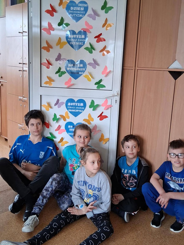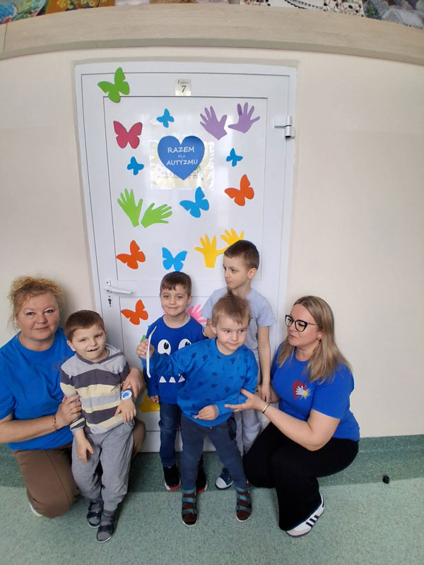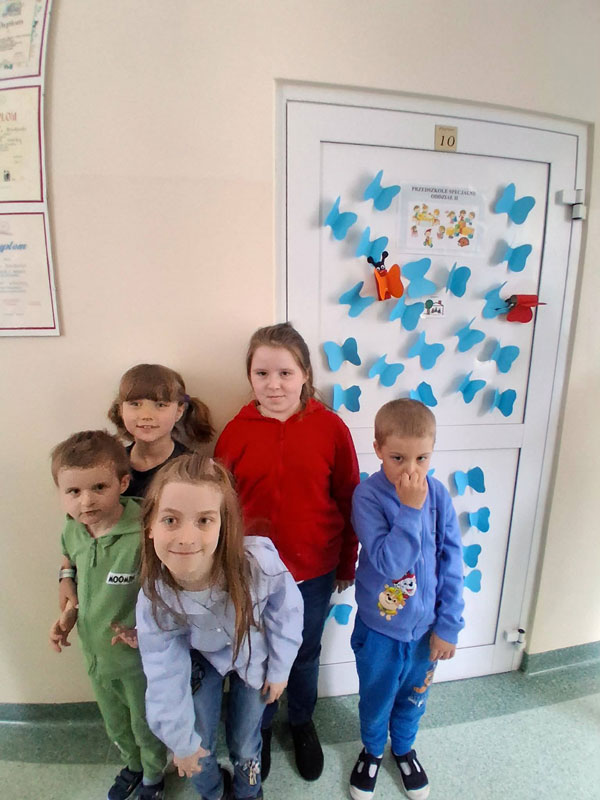 Na znak solidarności i akceptacji osób z autyzmem wychowankowie i nauczyciele ozdobili drzwi do swoich sal. Pojawiły się na nich symbole autyzmu-puzzle, wstążki, motyle, żarówki, znak nieskończoności.