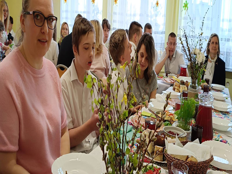 Z okazji Walentynek odwiedziła nas młodzież z Liceum Ogólnokształcącego w Dubience wraz z opiekunami. Goście zaprezentowali piękny występ muzyczny – pełen piosenek o miłości, a także obdarowali naszych podopiecznych upominkami i słodyczami. Nasi wychowankowie z radością odwdzięczyli się, wykonując specjalnie przygotowane na tę okazję piosenki. Było ciepło, radośnie i bardzo serdecznie.
